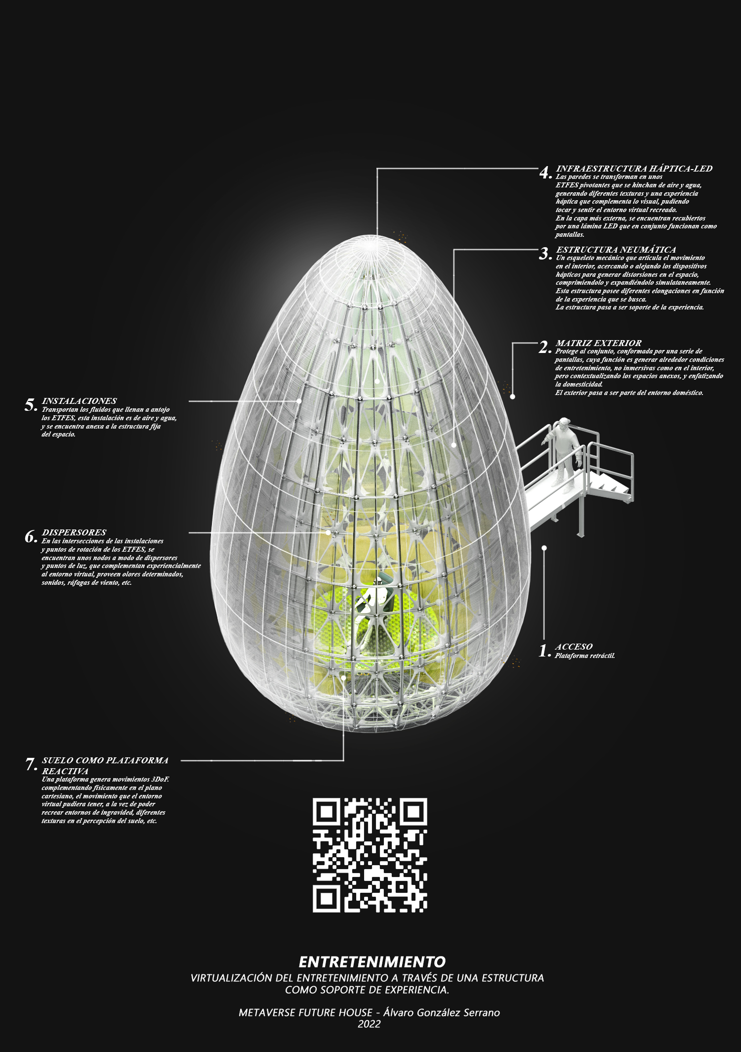 Elements of the Virtual Architecture es una investigación cuya intención tiene el redefinir el concepto de la vivienda tras haber asumido el contexto tecnológico en el que nos encontramos y el metaverso como un elemento más de la propia arquitectura, presente y transformador de