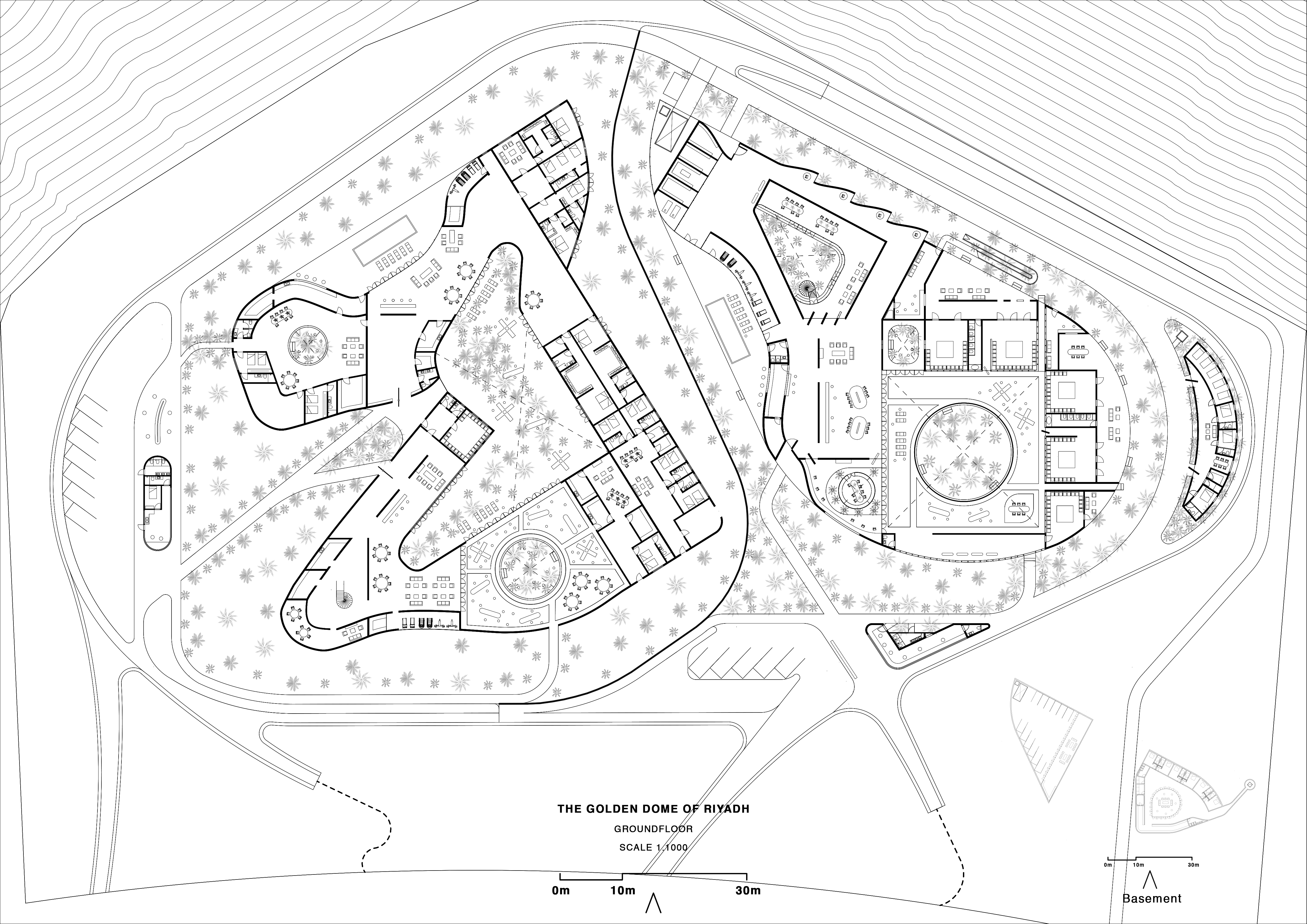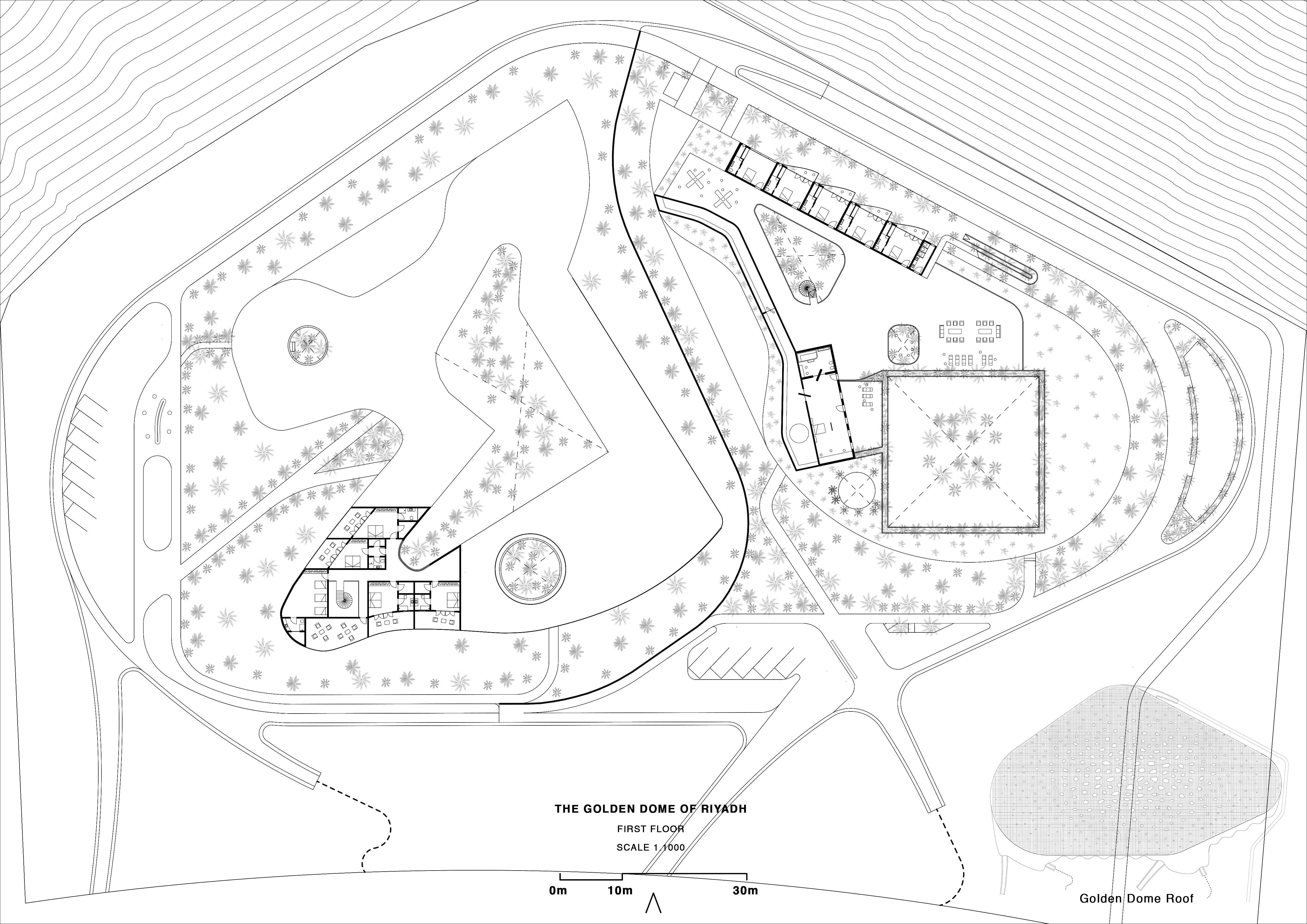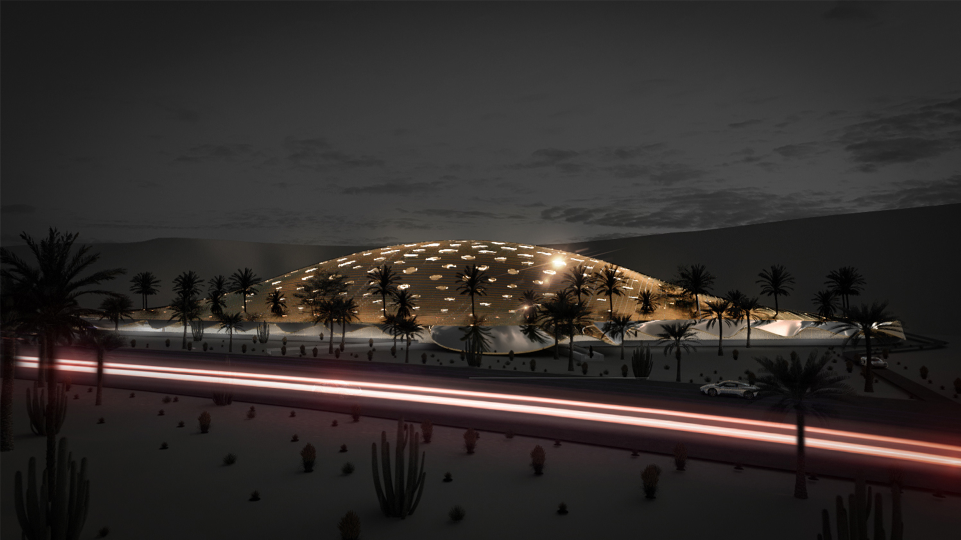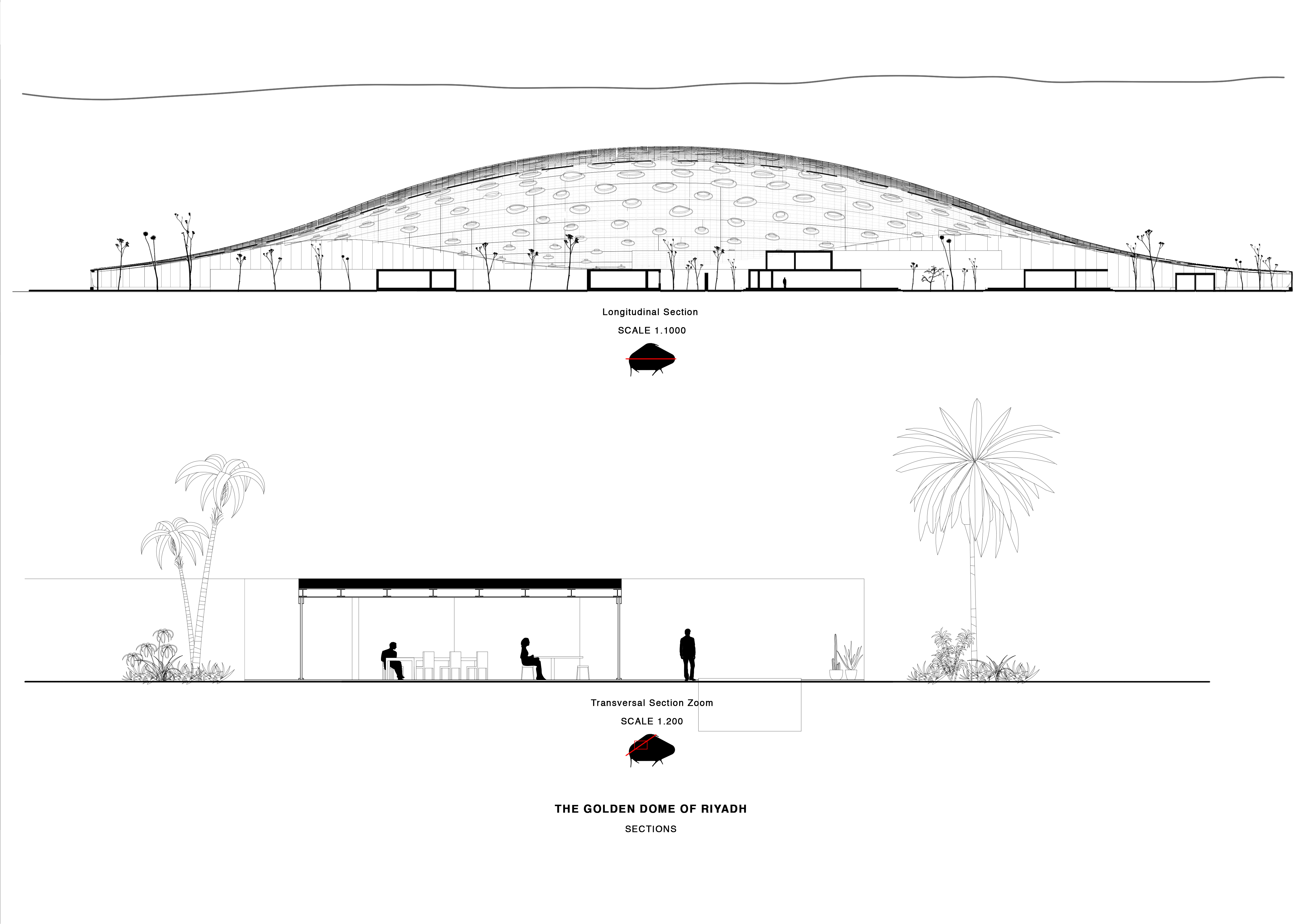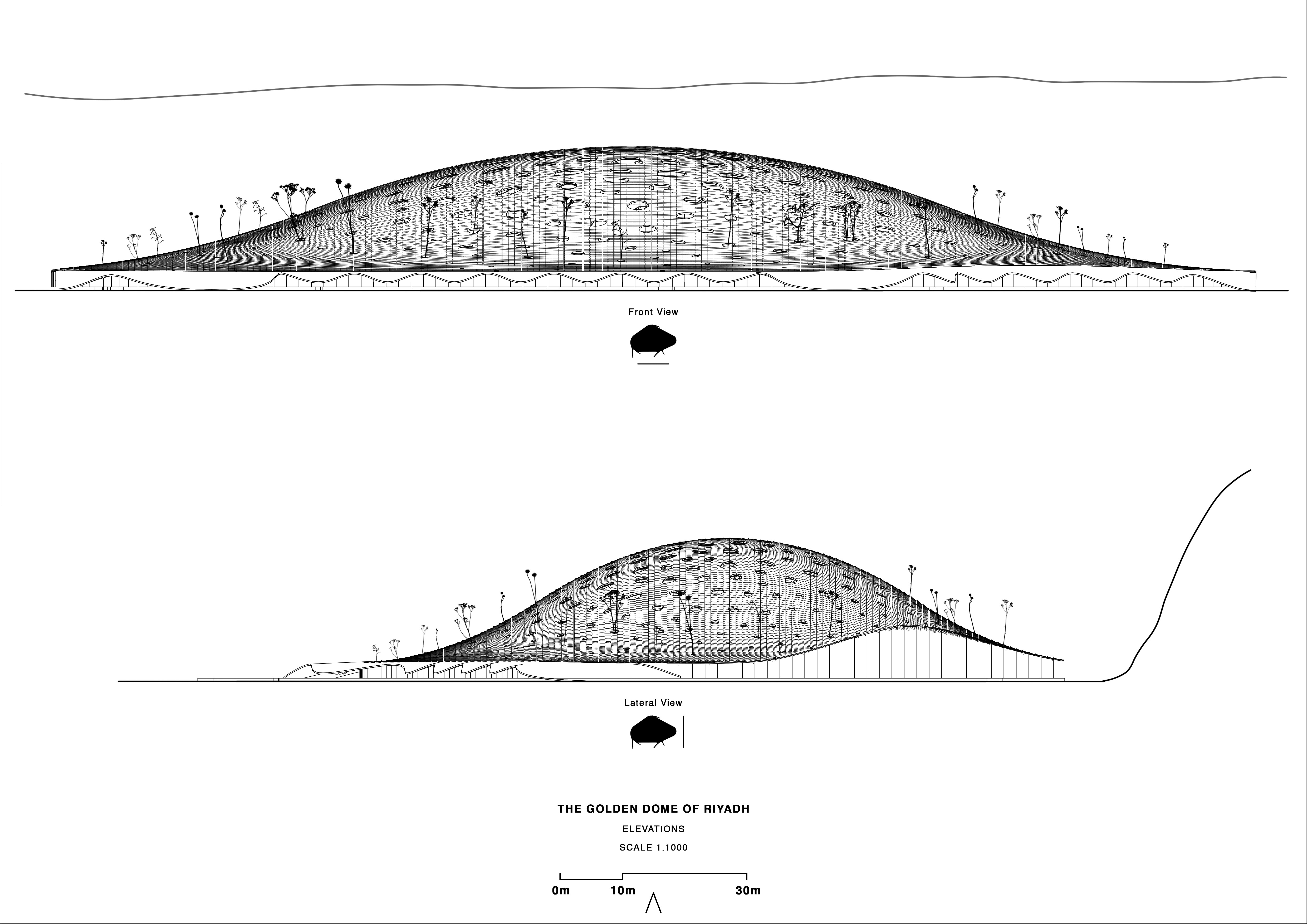 The main objective of Riyadh's golden dome is to be present in the environment with its own shape and materiality, it is a jewel, which denies the adversities of the desert through its own architecture and with the help of the technological devices located on the roof, recreating in its interior different phenomenological scenarios; monsoon rains, paradisiacal sunsets, northern lights, foggy sunrises, etc.