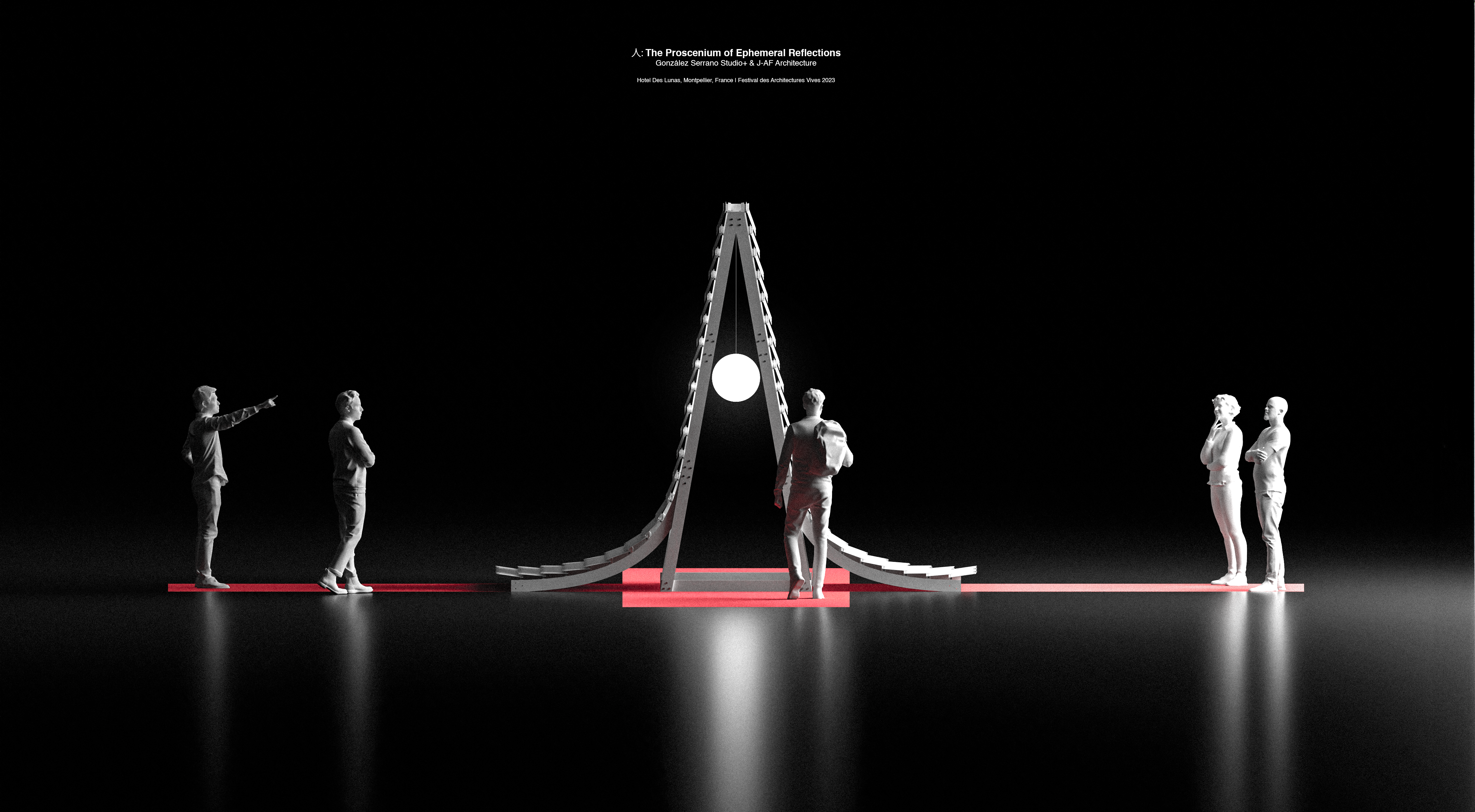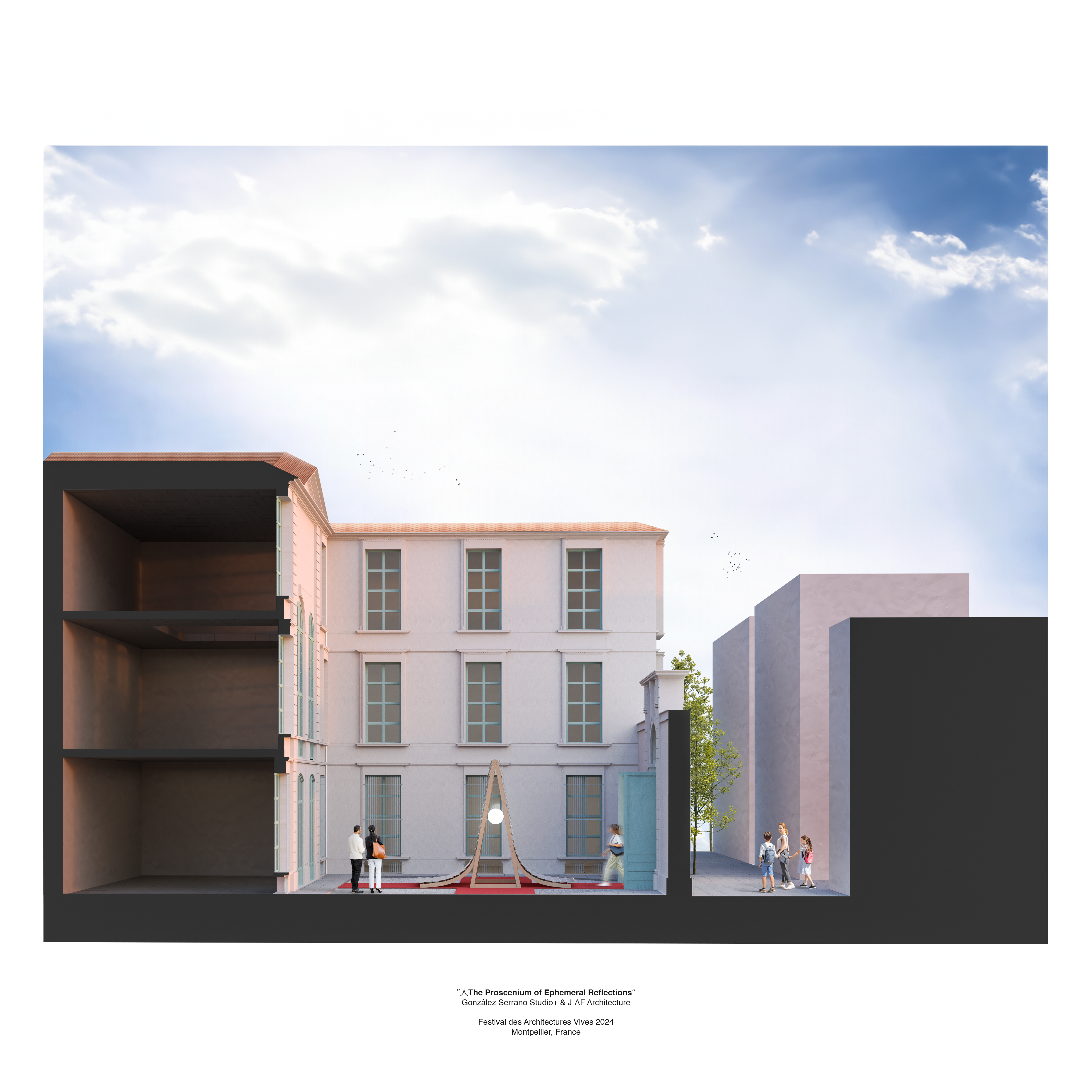 ¨Proscenium¨, space between the public and the curtain (facade) in a theatrical performance, origin of the ¨Court d´Honneur¨, between the public and the monumental.