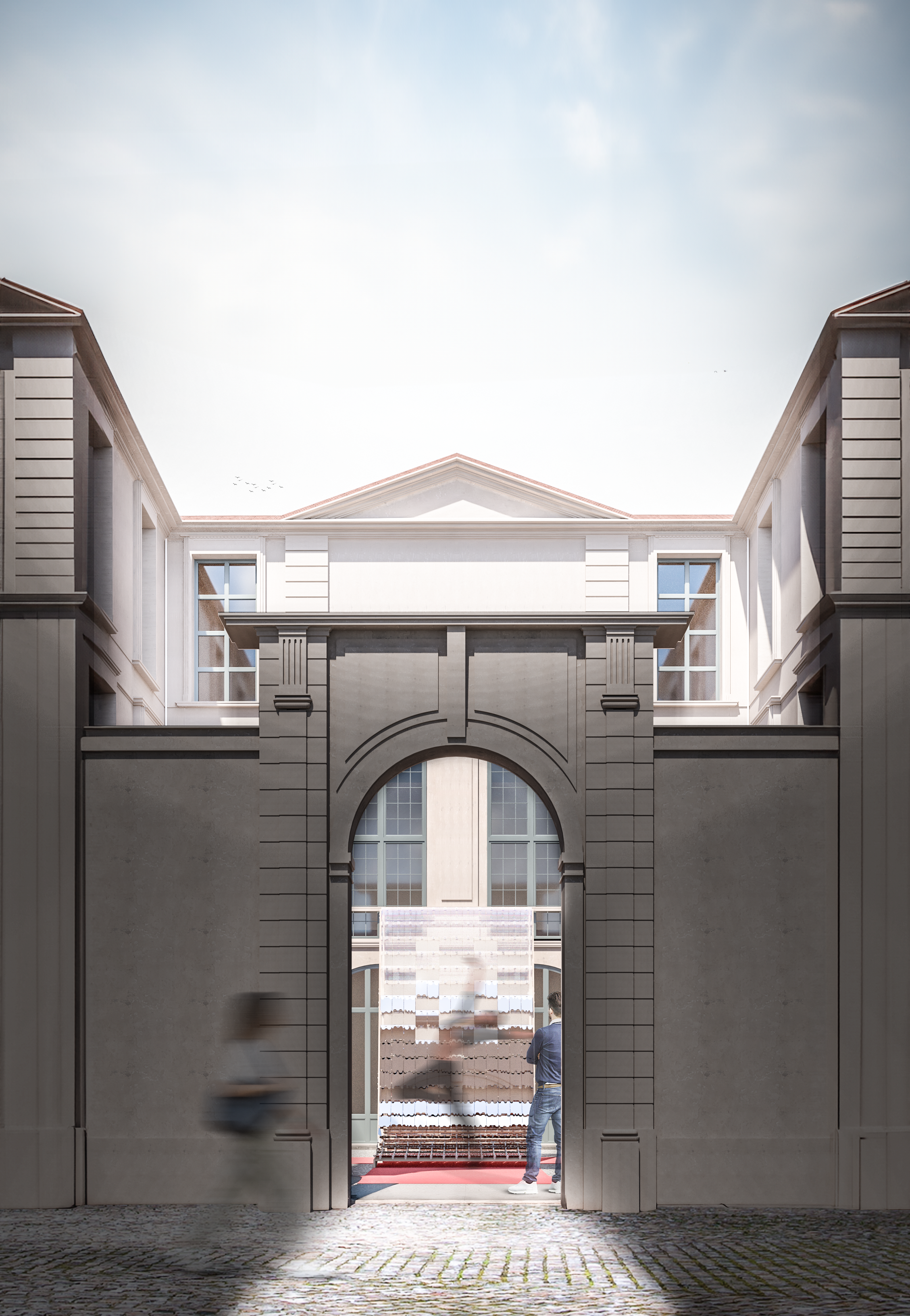 Rhytmic reflections appears in the courtyard, framing specific details of the national monument that host the proyect, making the visitors aware of the importance and beauty of the palace.