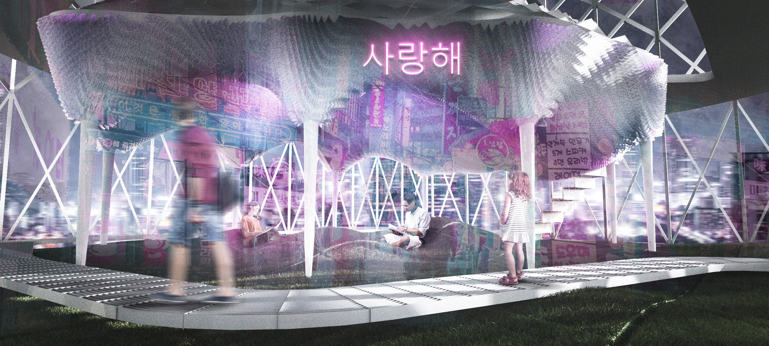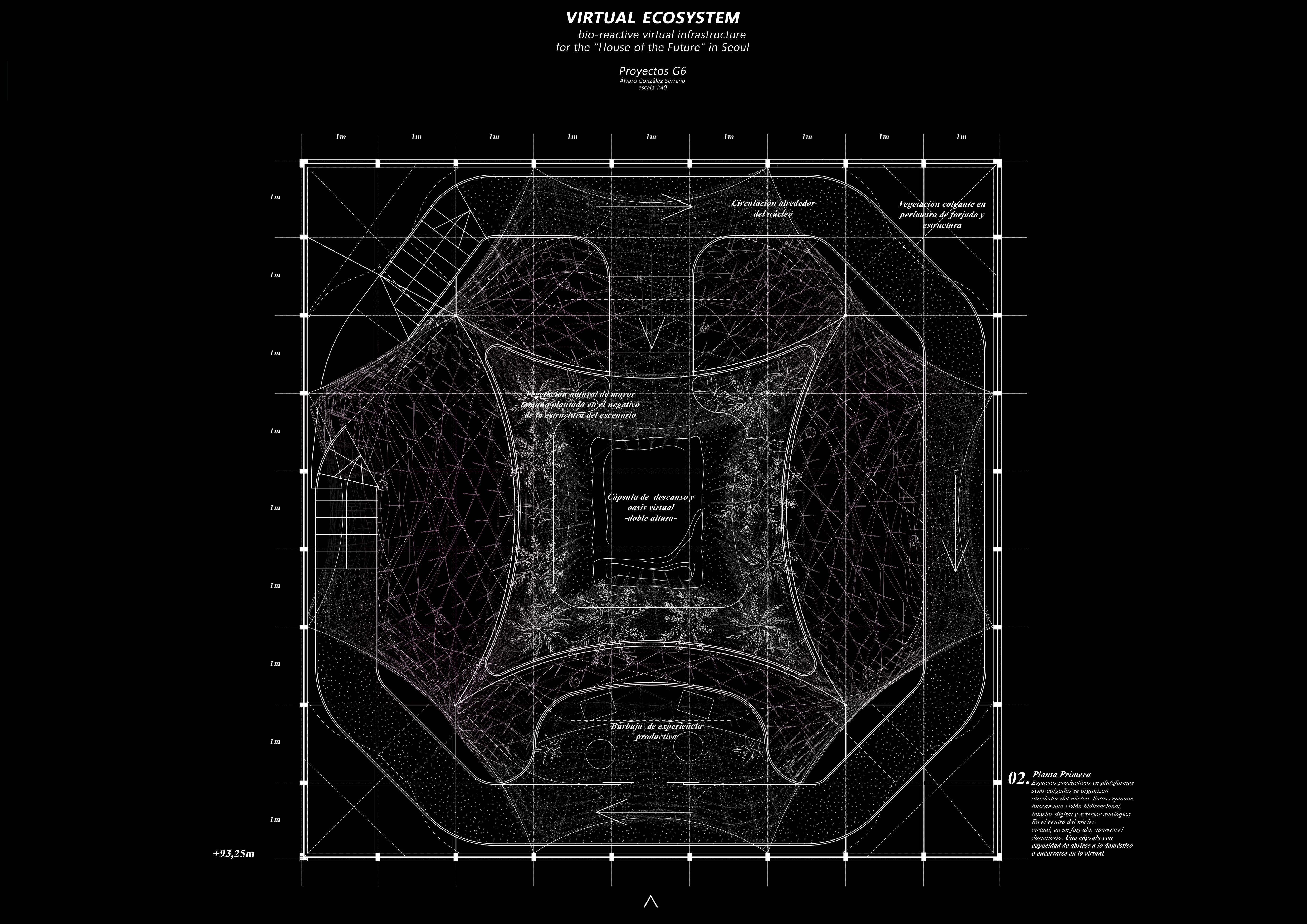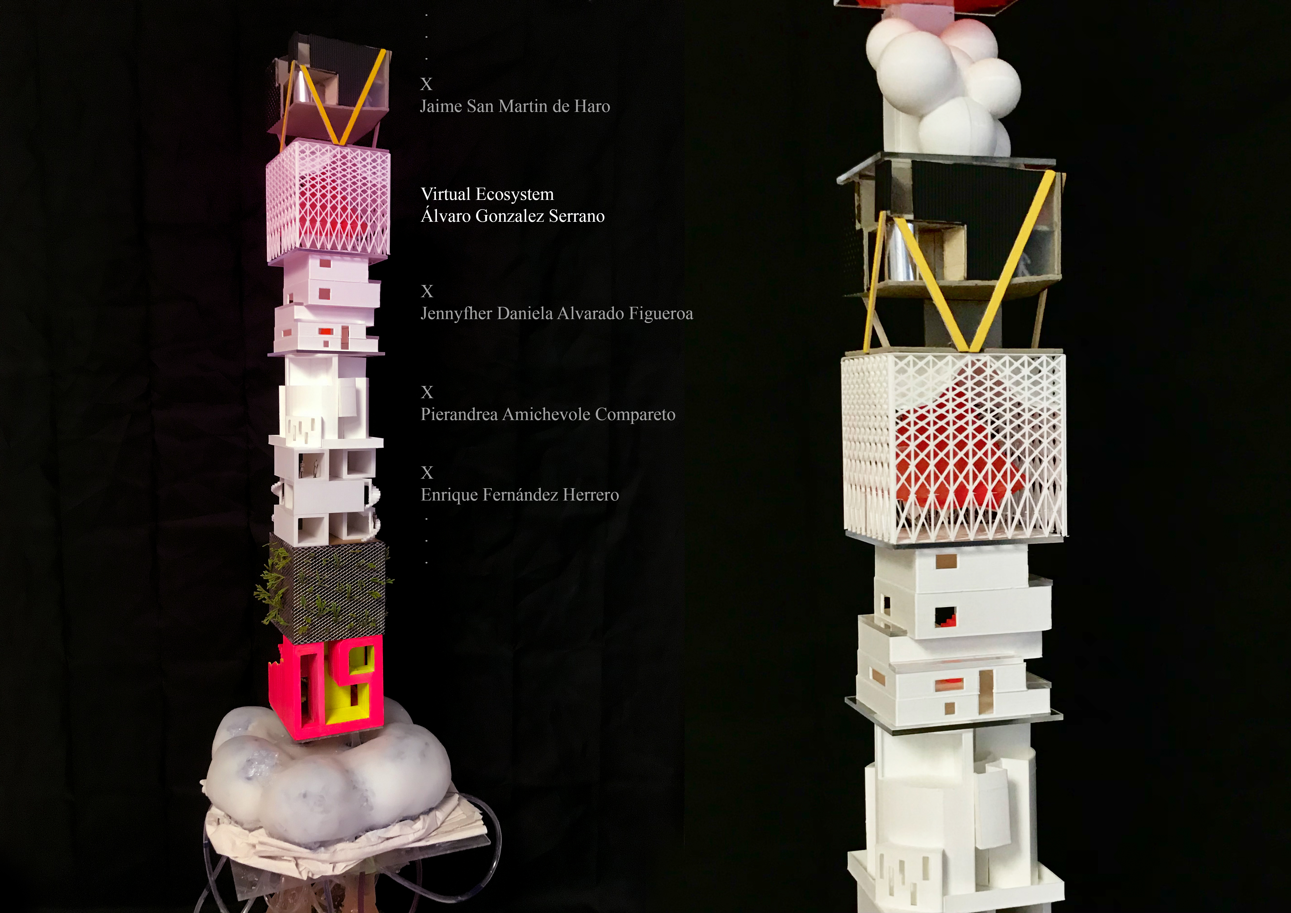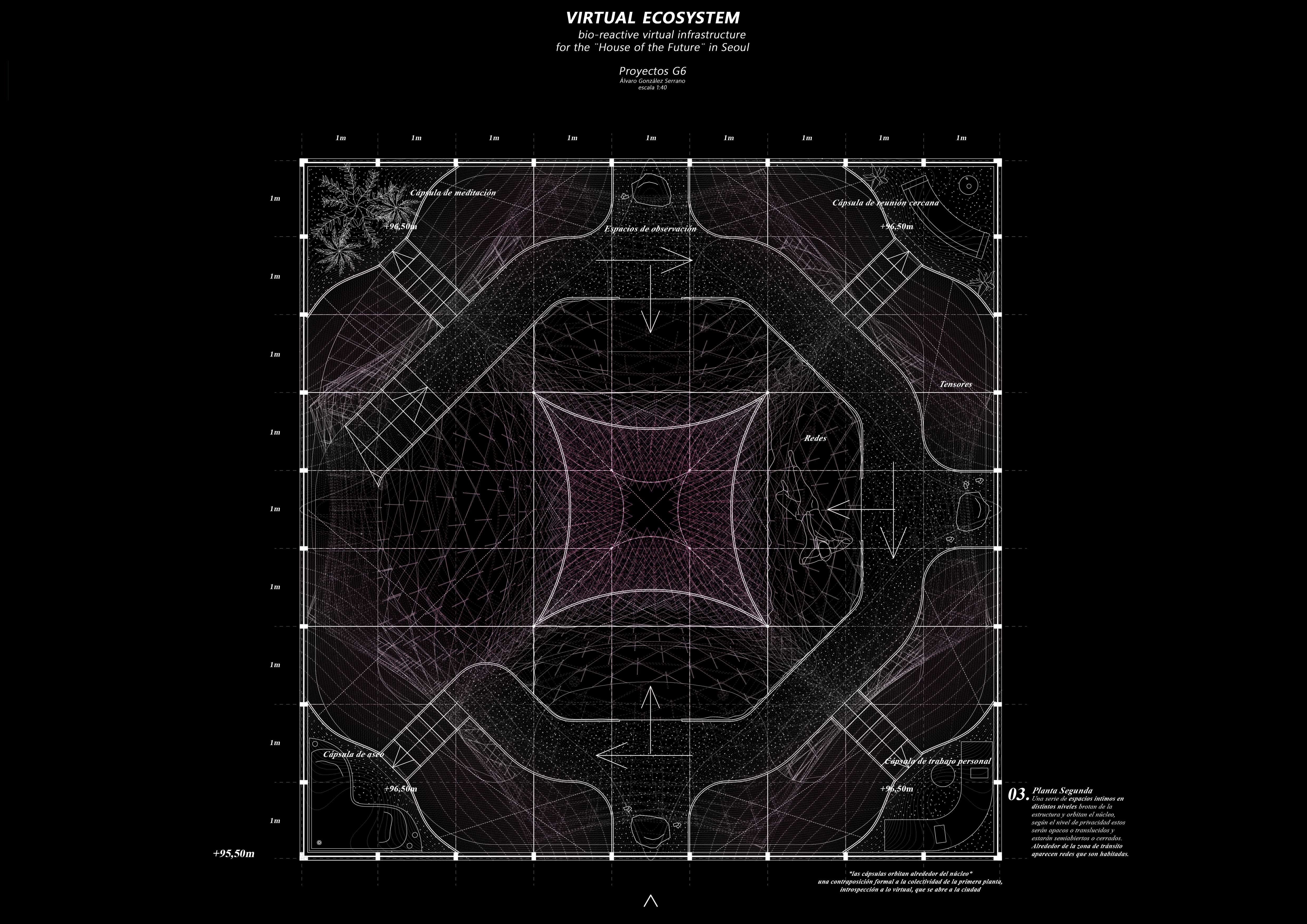 The project arises after an exercise in rethinking the domesticity of the future, from obsolete living machines to the effervescence of technology and shared experiences. The need to transform the static and opaque into the flexible and interconnected with the urban experience and its inhabitants is understood. A residential unit is projected, part of a skyscraper, in the city of Seoul, with dimensions of 9m x 9m x 9m. A virtual ecosystem where it is possible to explore and live on the border between the real and the virtual. This formal intersection will be a tensed, reactive and phenomenological structure with motorized led panels and multiple sensors around which we will orbit looking for the domestic spaces, as we go up, more private, with the ability to generate new types of experiences.